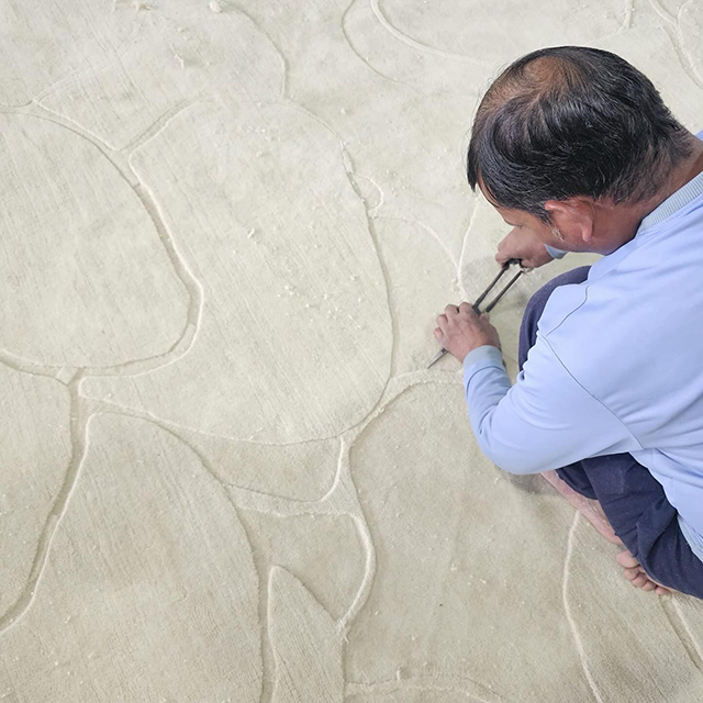 Hand carving this beautiful Tibetan wool rug in our Petal design. Created in three pile heights, Petal has a sumptuous and luxurious feel.