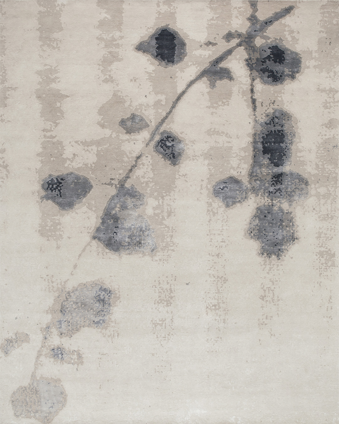 Our Abstract Floral rug in Beige Charcoal colours from our Nature Collection which will be re-visited next year when we plan to add a new design. Hand knotted rug in wool and silk and made to order in any size, shape or colour.
