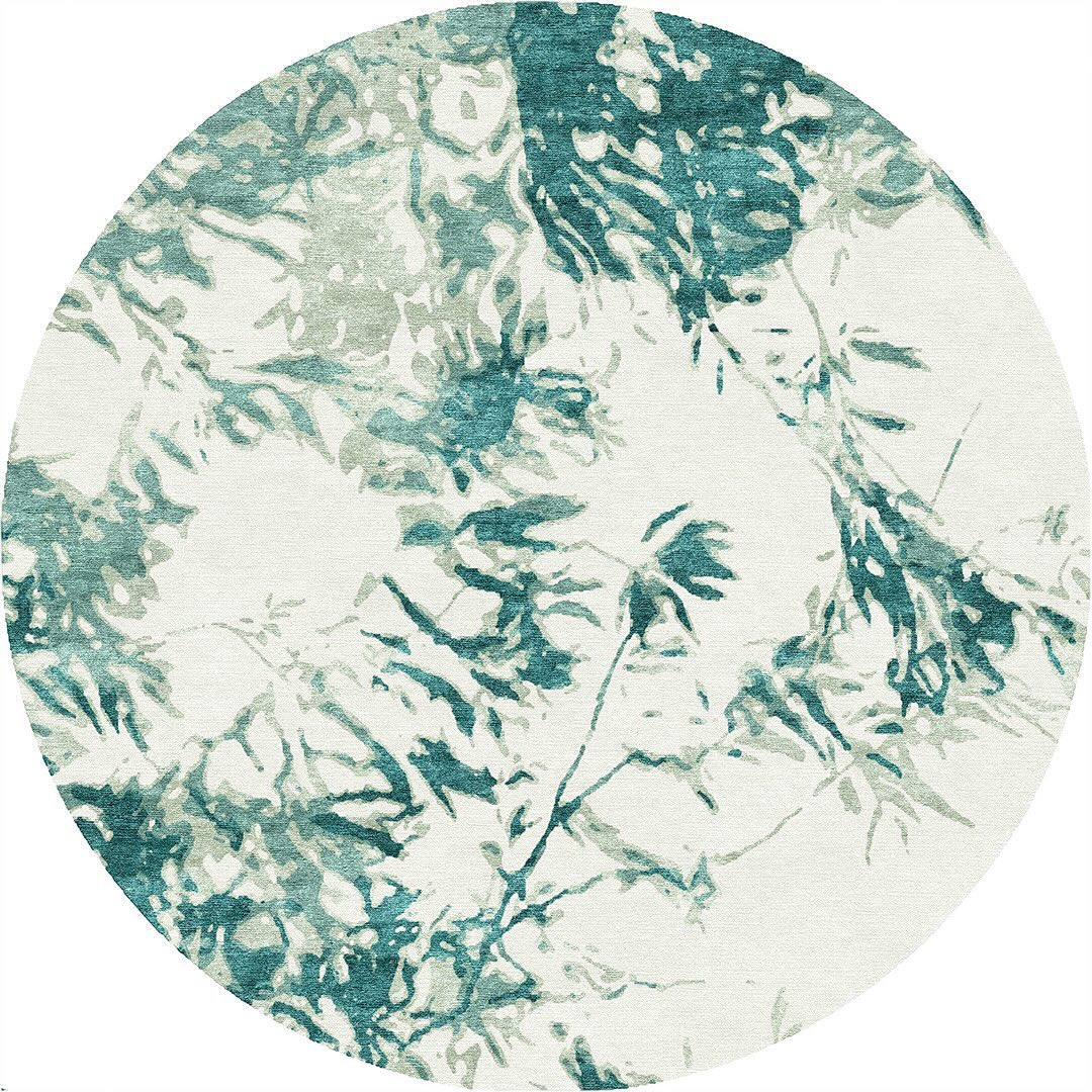 Our Shore design in Teal Sage. Shown here as a circular rug but available in any shape, size or colour.