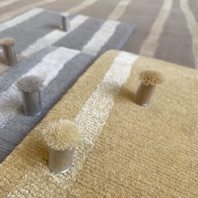 Matching pom colours for our Rain Lines design. We love working with our clients to create the perfect bespoke rug for each and every project.