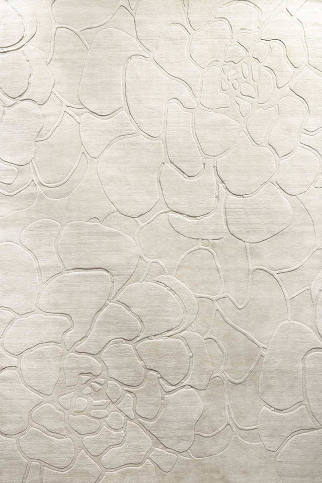 Check out the close-up of our handloom Petal design. Handmade in soft Himalayan wool, the design is hand carved and cut in three pile heights giving the rug a sumptuously luxurious feel.